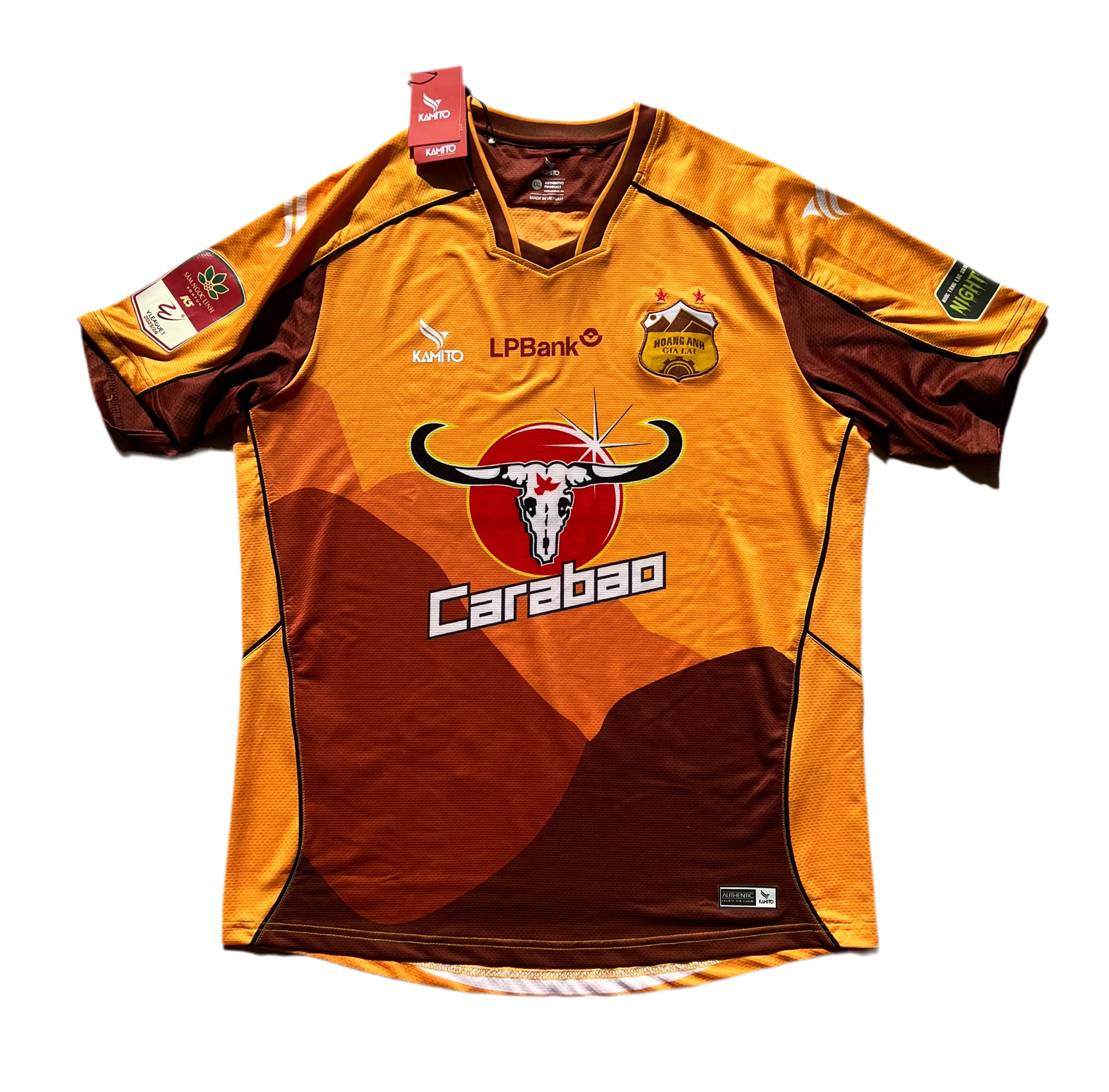 🏆 Koszulka Hoang Anh Gia Lai FC — oryginalny strój meczowy jednego z najbardziej rozpoznawalnych klubów ligi wietnamskiej. Wyróżnia się ciepłą, złoto-brązową kolorystyką inspirowaną energią Azji Południowo-Wschodniej, z charakterystycznym logo sponsora Carabao na froncie. Idealna pamiątka dla fanów piłki nożnej i podróżników, którzy lubią przywozić z wojaży unikatowe, trudno dostępne przedmioty.