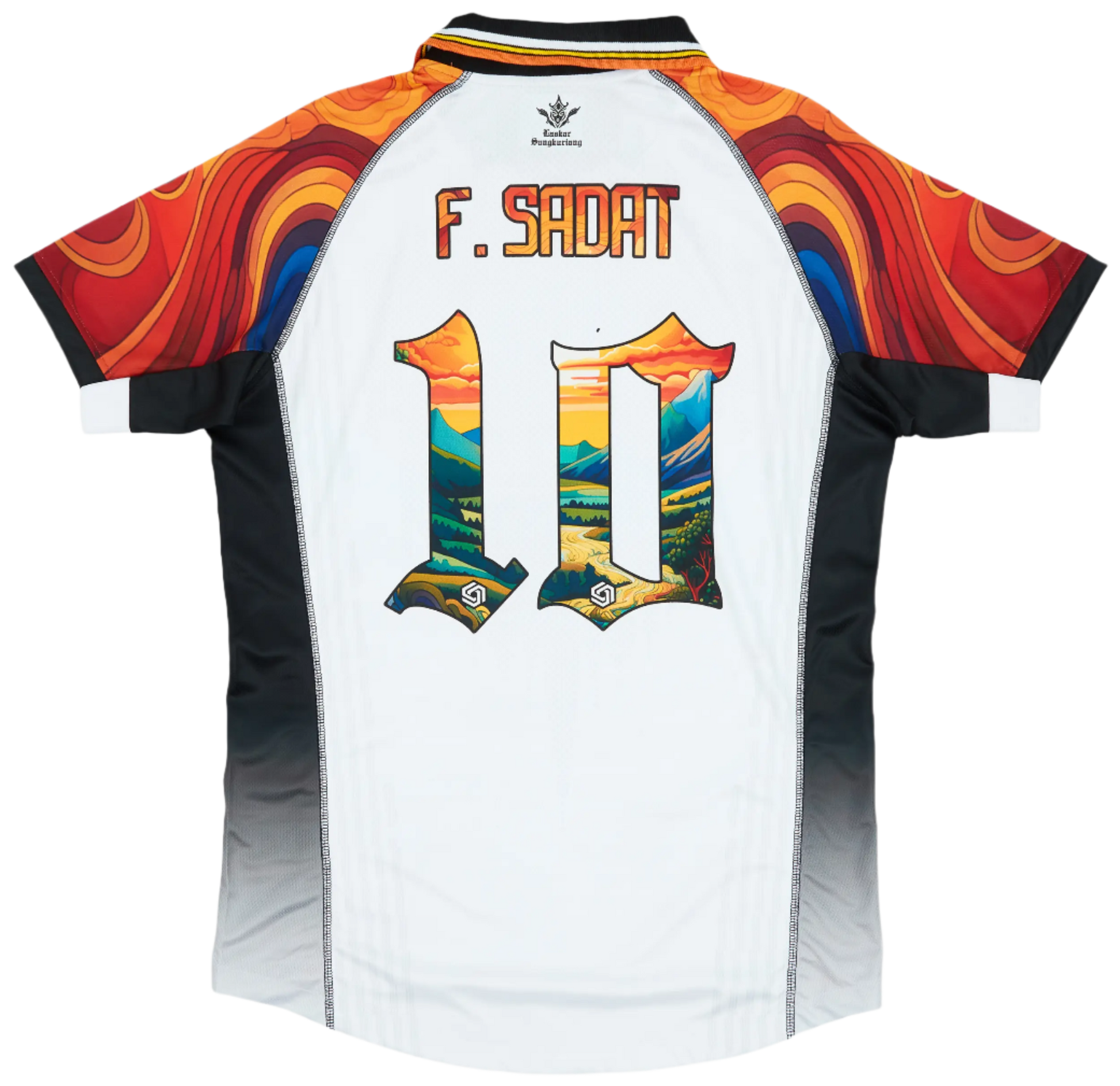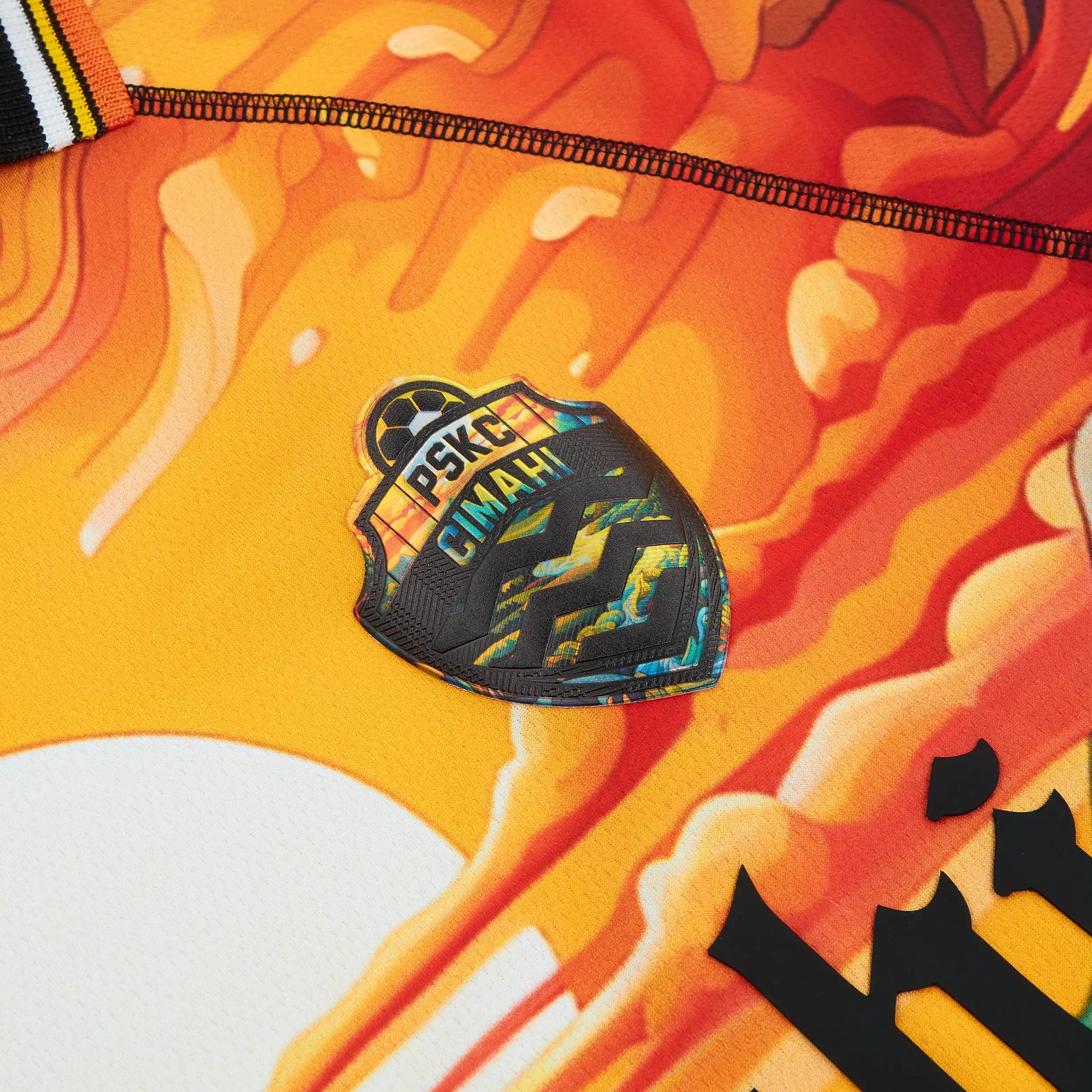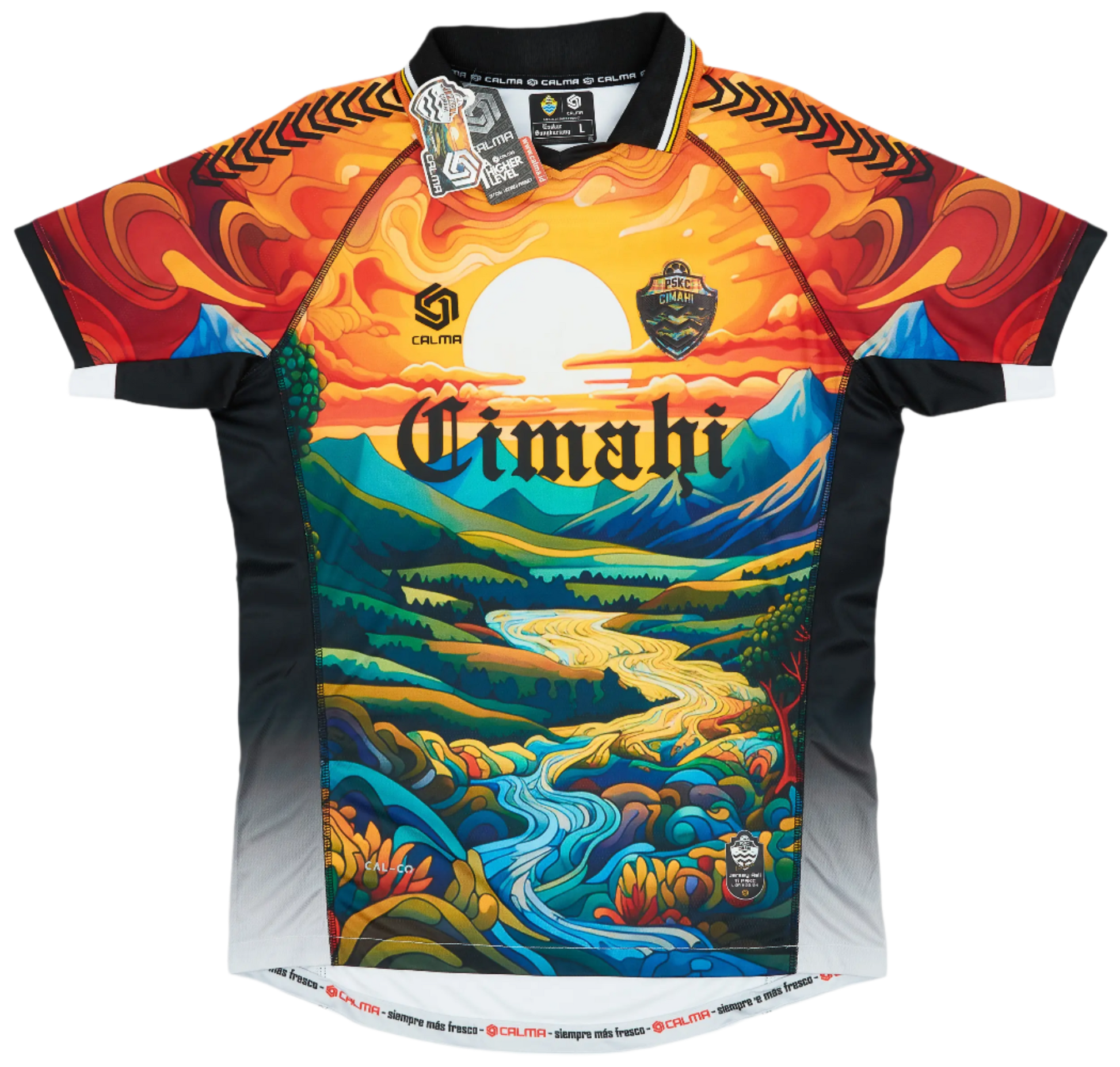🪡Finishing details: A black collar with orange and white piping adds elegance, while the Calma logo on the right chest and the sponsor in the center are also in black, harmoniously blending in with the rest of the design.